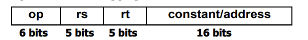 하지만 lw, sw 같은 명령어 에선 위 와같은 field로는 offset(상수)를 표현하기에 제약이 있다.
